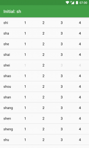 - In the Initial/Final screen, tap the toneless syllable on the left hand side to play all the tones for that syllable. A quick way to play the famous “ma1, ma2, ma3, ma4”!