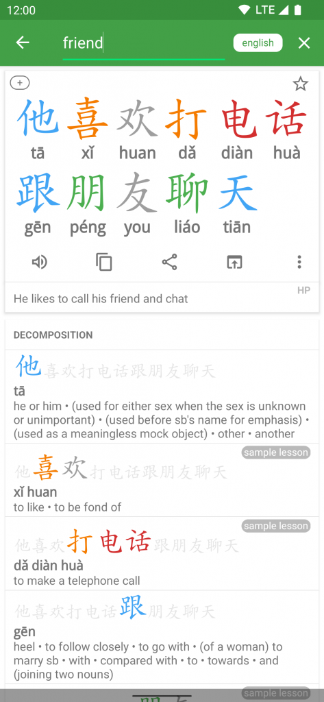 - Convenient related English search buttons below exact match search result. (e.g. person, people, human etc in screenshot below)